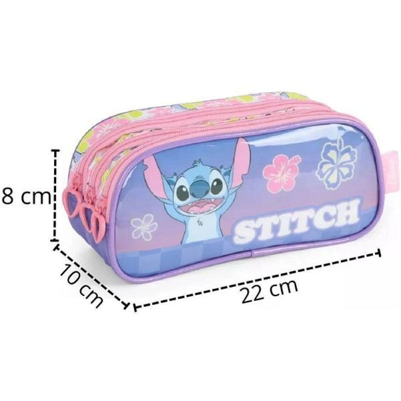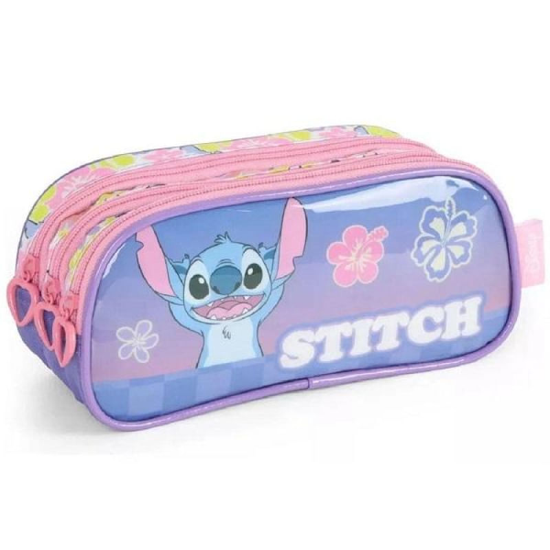Deixe o dia a dia das crianças mais organizado e divertido com este lindo estojo triplo infantil da Disney Com um design encantador do Stitch, ele é perfeito para os pequenos que adoram estar prontos para a escola.