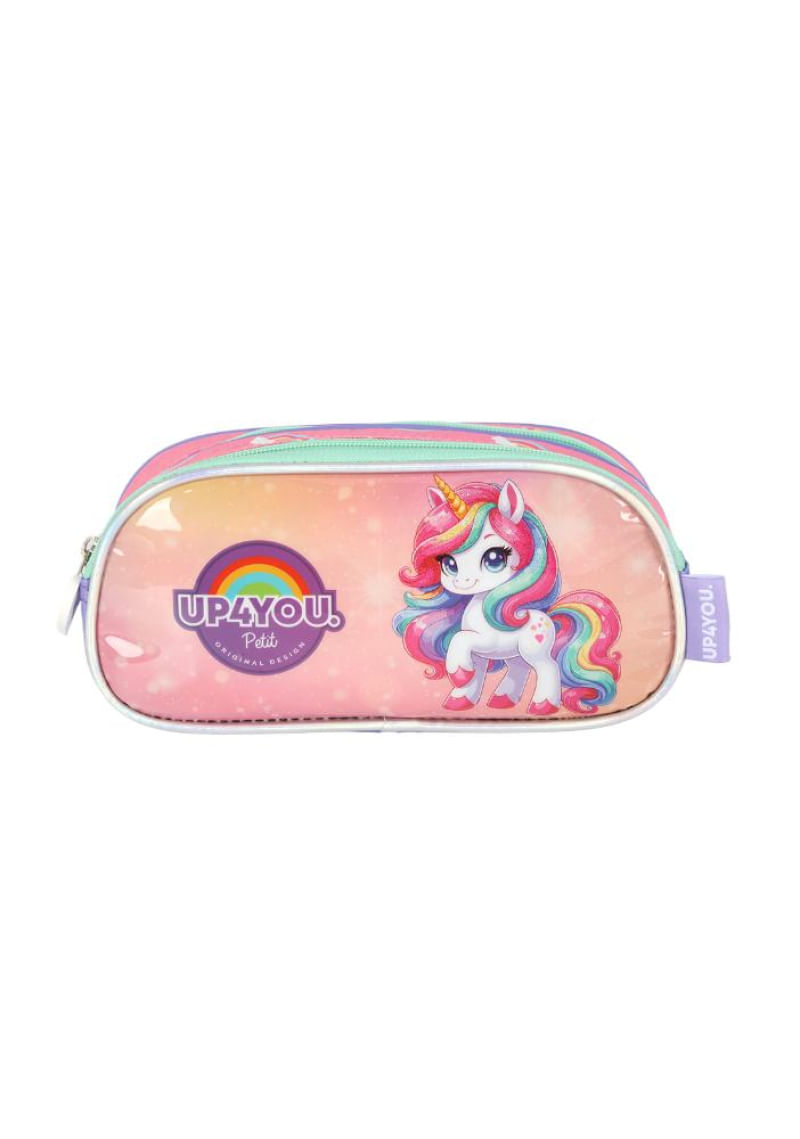 O Estojo Infantil Up4you triplo modelo EI42115UP faz parte da encantadora coleção Be Capy, trazendo brilho, estilo e praticidade para o dia a dia escolar. Desenvolvido especialmente para o público infantil, apresenta design moderno com estampa exclusiva com glitter, refletindo o visual alegre e criativo da linha Up4you Kids.Com dimensões de 22 x 10 x 8 cm e capacidade aproximada de 3 litros, é classificado como estojo médio triplo, oferecendo três compartimentos espaçosos que garantem organização e praticidade para armazenar lápis, canetas, borrachas e outros acessórios escolares.• Rosa – Estampa Unicórnio • Pink – Estampa CapivaraEntre seus diferenciais, destacam-se o zíper personalizado, o acabamento reforçado e o brilho delicado do glitter, que acrescenta charme e personalidade ao produto. Fabricado em poliéster resistente, o estojo é leve, durável e perfeito para o uso diário.Material: poliéster resistente com acabamento glitterDicas de uso: ideal para escola, reforço ou atividades criativas, garantindo organização, charme e praticidade para o público infantil.Dicas de limpeza: limpar com pano macio levemente umedecido em água e sabão neutro. Evite produtos químicos agressivos, escovas de cerdas duras e imersão em água, para preservar o brilho do glitter e o acabamento do material.Certificação Inmetro: 005840/2025.