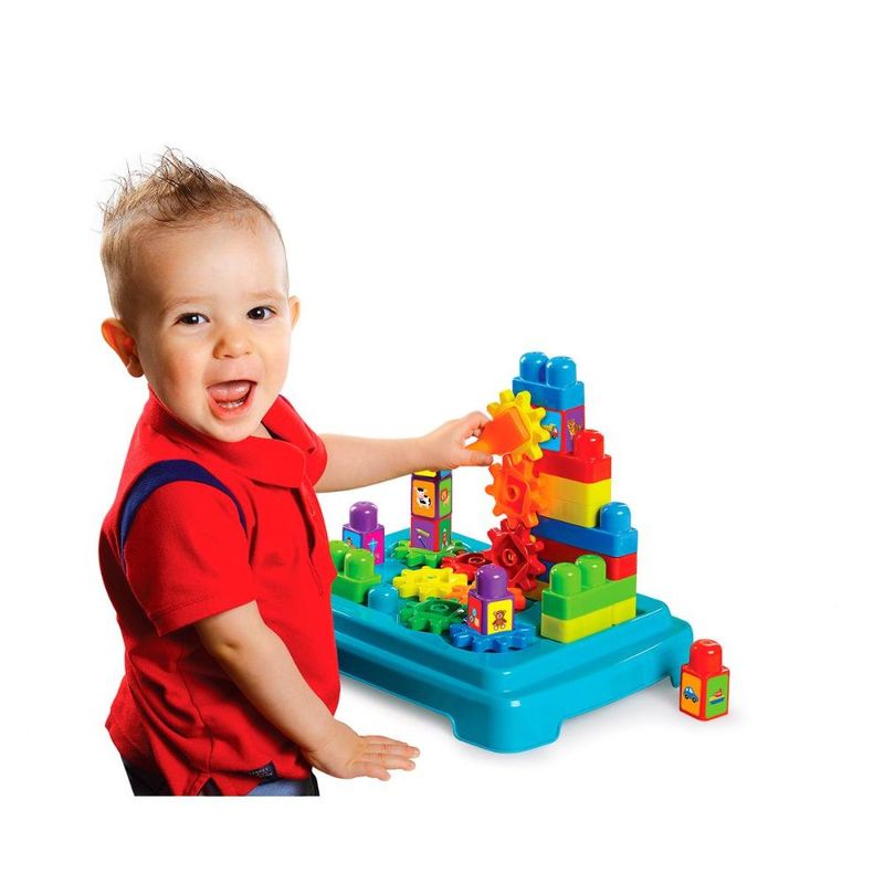 Diferenciais:Tudo Gira e Encaixa: Com 53 peças, incluindo engrenagens e blocos, este kit é perfeito para criar um mundo onde tudo se conecta e movimenta!Leve a Diversão a Todo Lugar: Graças à caixa com rodinhas, levar essa aventura de engrenagens por aí é fácil. O playground agora é onde você quiser!Estimula o Desenvolvimento: Além de ser mega divertido, ajuda os pequenos a dar um up na coordenação motora, no foco e na concentração. É brincar e aprender, tudo junto!Raciocínio Estimulado: A tampa não é só uma tampa; é um desafio extra com encaixes e engrenagens que fazem o cerebrozinho trabalhar a todo vapor.Personalize a Brincadeira: Vem com uma cartela de adesivos para deixar cada criação única. Porque aqui, a imaginação é quem manda!