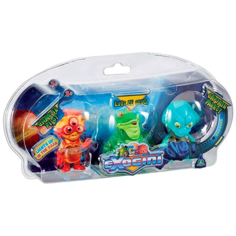 Exogini Kit Com 3 Capitão Papagaio Louis Le Slug Piloto Charlie - Candide Viemos do espaço para uma grande aventura na Terra! Contamos com sua ajuda para conquistar esse grande Planeta. Chegou os exogini>Exogini, os Aliens aventureiros da Candide. exogini>Exogini são as pequenas criaturas alienígenas que caíram na Terra! Cada um tem a sua aparência e personalidade única. Colecione todos eles e construa seu próprio exército do espaço exterior! Esses alienígenas loucos têm apenas um propósito: conquistar o mundo! Você vai ajudá-los a fazer isso? selo inmetro: CE BRI/BRICS-00242-15