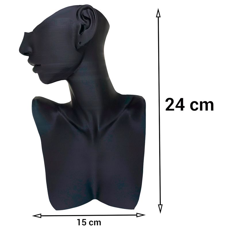 Busto Expositor de Joias Preto – Impressão 3D para Brincos e Colares