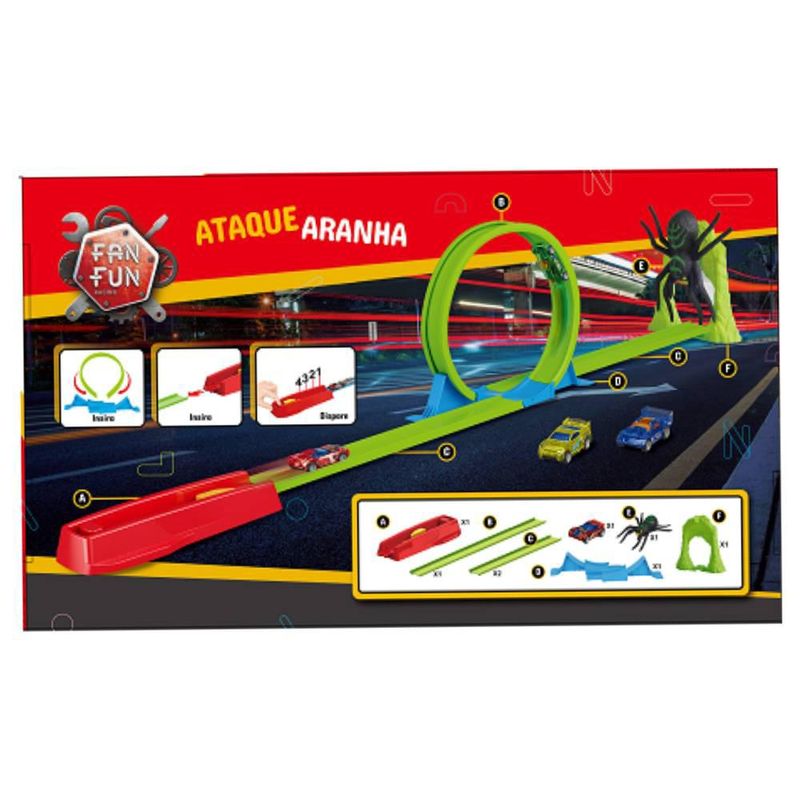 A diversão da garotada está garantida com a pista Ataque do Homem Aranha da FanFun. Entre nessa aventura em 4 rodas e chame os amigos para brincar de montão! O brinquedo conta com uma pista radical com uma aranha acoplada, além de um carrinho para correr na pista! Convide seus amigos para entrar nessa aventura.