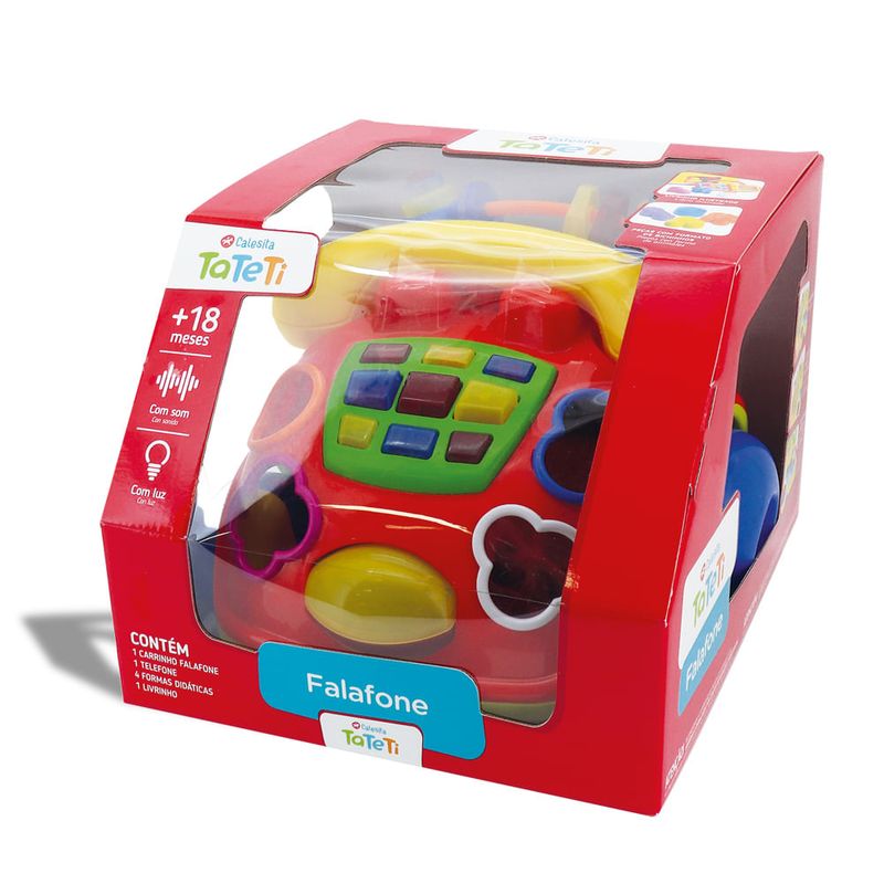 Com cores alegres e luzes coloridas, o falafone possui funções de sons ao tocar as telas. Sua esfera giratória e o livrinho na parte de trás do brinquedo incentiva o desenvolvimento das capacidades motoras, habilidades sociais e aprendizagem através da descoberta. Ensina e diverte seu bebê.