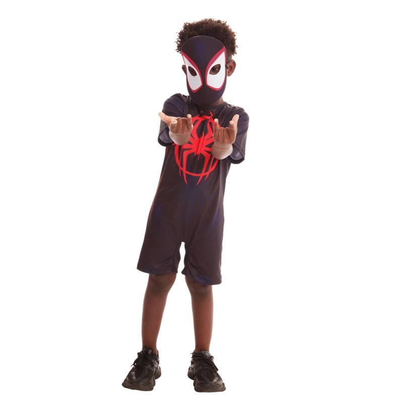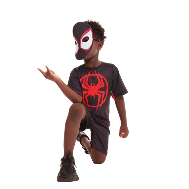 fantasia Miles Morales basica tamanho p da Novabrink, entre no universo de Spider-Man: Across The Spider-Verse com, o herói que atravessa dimensões e salva o dia, a fantasia vem com 1 macacao curto em tecido 100% poliéster, com artes estampadas que recriam o visual icônico do Miles para completar a transformação, acompanha uma máscara em tecido dublado, deixando a brincadeira ainda mais divertida, essa fantasia é perfeita para todos os pequenos heróis prontos para grandes aventuras!