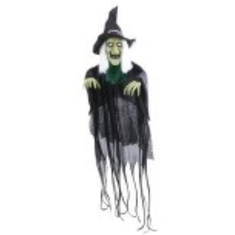 Com som e movimento, luz nos olhos, sensor de presença, utiliza 03 pilhas AAA, largura 45cm, altura 110 cm. A bruxa Agnes, pode ser utilizada para enfeite e decoração, possui sensor de movimentos com som a base de pilhas. Muito utilizada em ocasiões festivas como Halloween / Dia das Bruxas. Tema: Bruxa, Categoria: Halloween / Dia das bruxas.