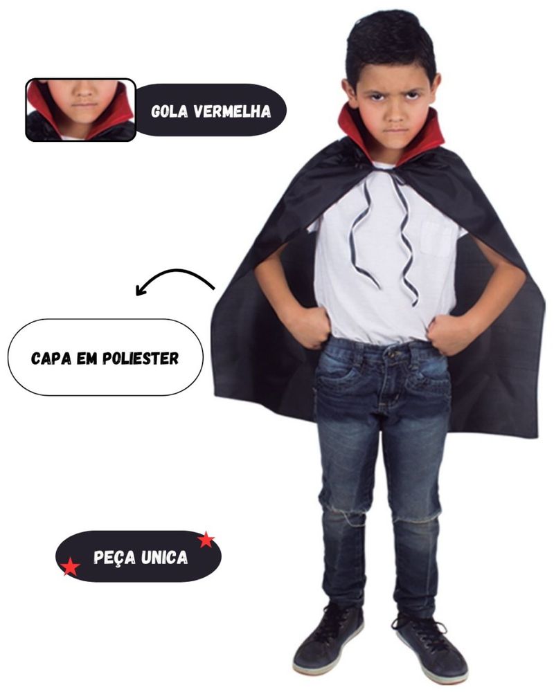 A fantasia de Capa Dracula é uma opção clássica e encantadora para o Carnaval