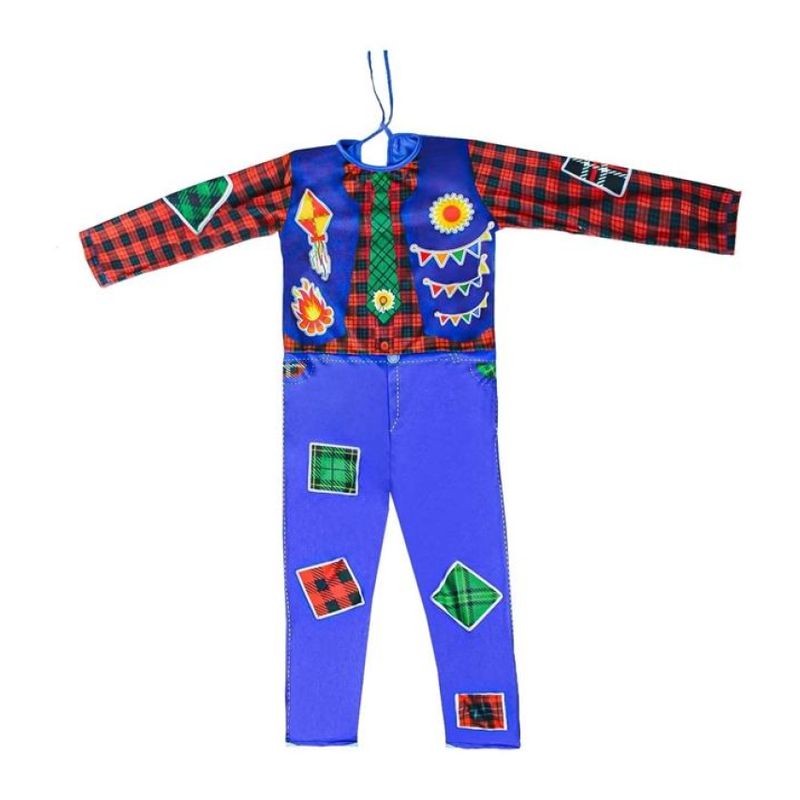 Esse lindo macacão longo de festa junina infantil para meninos possui mangas longas para seu filho não passar frio e fechamento com cordões nas costas para a brincadeira ficar mais confortavel. O macacão tem estampas de retalhos, calça, camisa, colete e gravata, para que o look fique completo em uma única peça. Perfeito para se fantasiar de mister caipirinha, espantalho ou noivo caipira, ideal para o seu pequeno se divertir nas quadrilhas de São João. Confira!