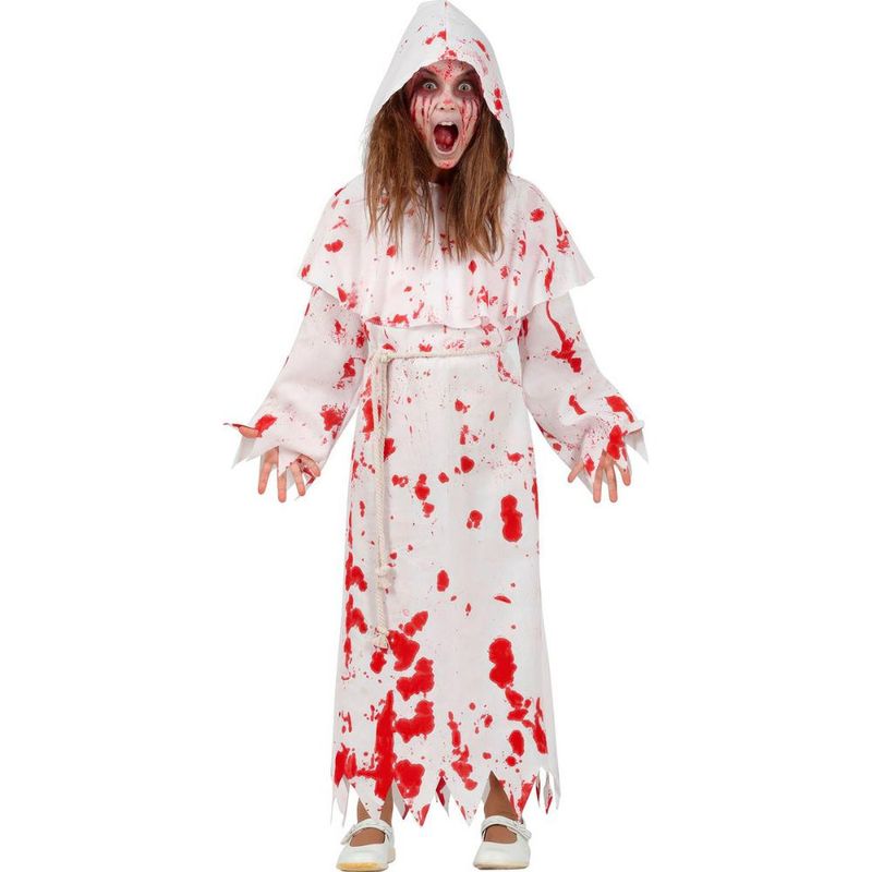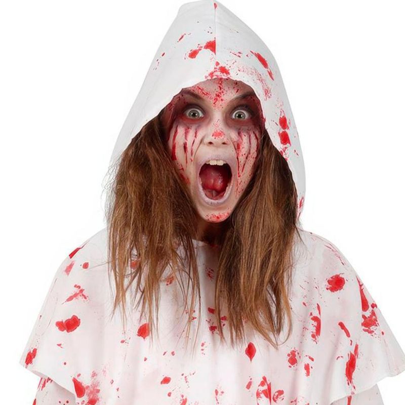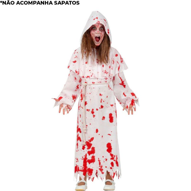 Prepare a sua pequena para o Halloween com esta Fantasia de Freira ou Monge Sangrento Infantil! O conjunto é completo e ideal para festas, eventos de terror e brincadeiras. A fantasia inclui uma túnica branca com capuz e gola fixos, com estampa de sangue falso com efeito realista, criando um visual aterrorizante e autêntico. O fechamento prático em velcro facilita na hora de vestir e tirar a roupa, garantindo que a criança possa se divertir com liberdade. Acompanha também um cinto de corda com 150 centímetros de comprimento, que complementa o visual e pode ser ajustado para um caimento perfeito. Uma fantasia que combina conforto e um visual assustador para uma celebração inesquecível! Túnica com capuz e gola fixos Estampa de sangue com efeito realista Cinto de corda com 150cm de comprimento Fechamento prático em velcro Ideal para Halloween, festas e carnaval OBS: Não acompanha sapatos.