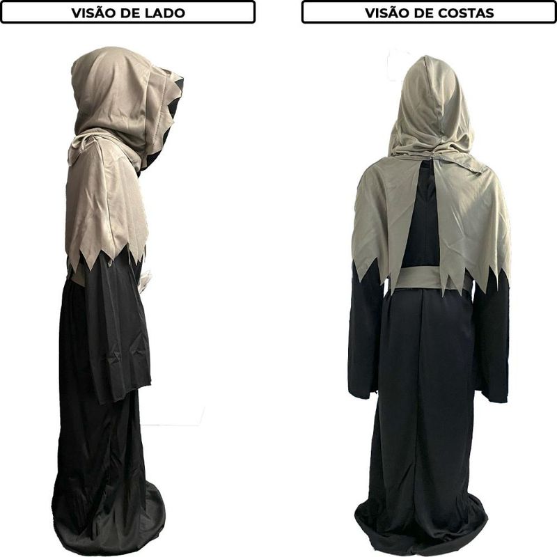 A fantasia infantil Ceifador Sinistro é perfeita para meninos no Halloween, com fechamento em gruda e desgruda nas costas para fácil ajuste, com capuz e máscara leve e respirável com efeito transparente para melhor visão, e cinturão de borracha de altíssima qualidade com design de caveira. O cinto ajustável oferece ajuste confortável e personalizado. Com materiais de qualidade, essa fantasia garante conforto e um visual aterrorizante para uma noite inesquecível.