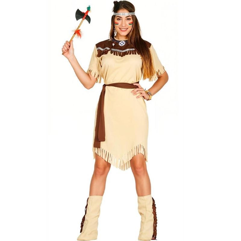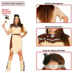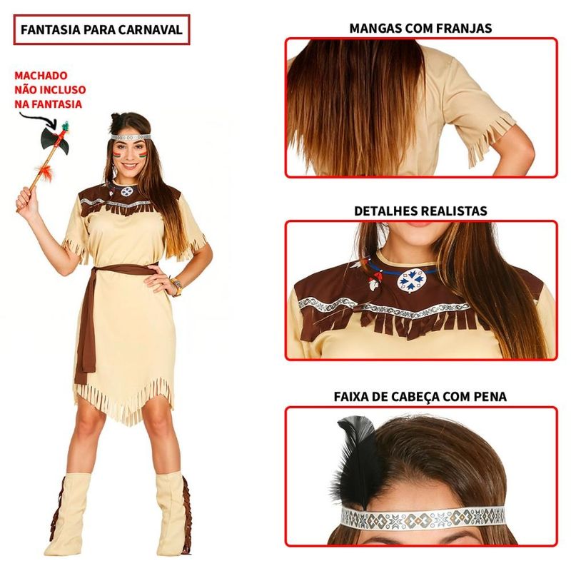 Mergulhe no espírito das tradições antigas com esta fantasia feminina inspirada nos trajes de nativos americanos! Perfeita para quem busca um visual autêntico e sofisticado, essa peça é ideal para Carnaval, festas temáticas, Halloween e apresentações culturais. A fantasia é composta por um vestido bege claro com franjas nas mangas e na barra, acima do busto um detalhe de tecido marrom com franjas e estampa indigena, cinto marrom, faixa de cabeça prateada com detalhes geométricos e sobrebotas com franja combinando, que adicionam ainda mais charme ao traje. Um look que une conforto e estilo para quem deseja se destacar em qualquer evento.Design Tradicional e detalhes autênticos Conjunto Completo com um look impecável. Material Leve e Confortável Detalhes Artesanais Sinta a conexão com a história e a cultura em um traje cheio de estilo e personalidade!