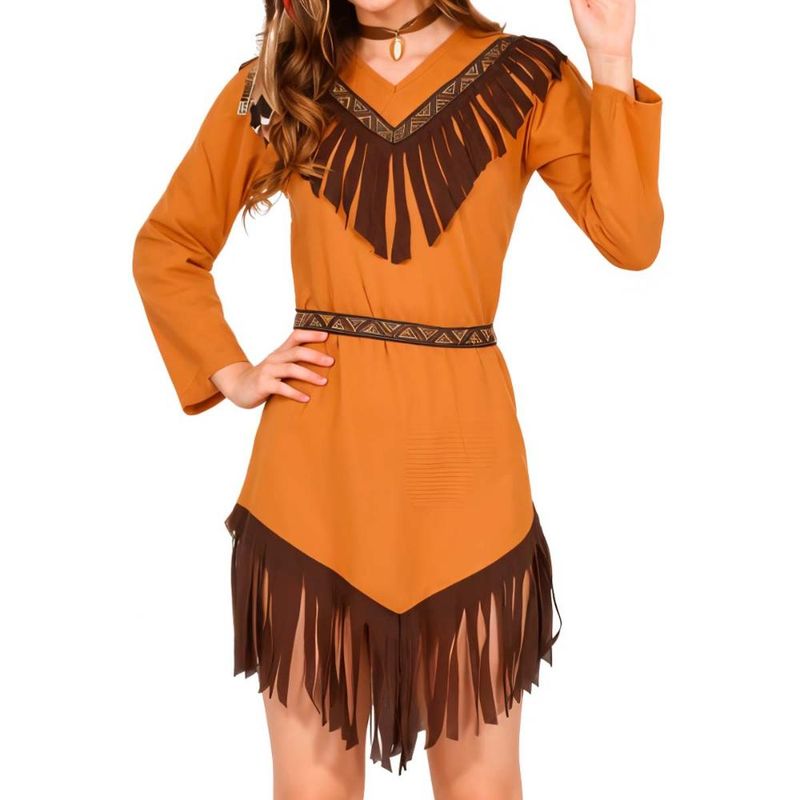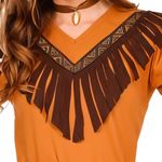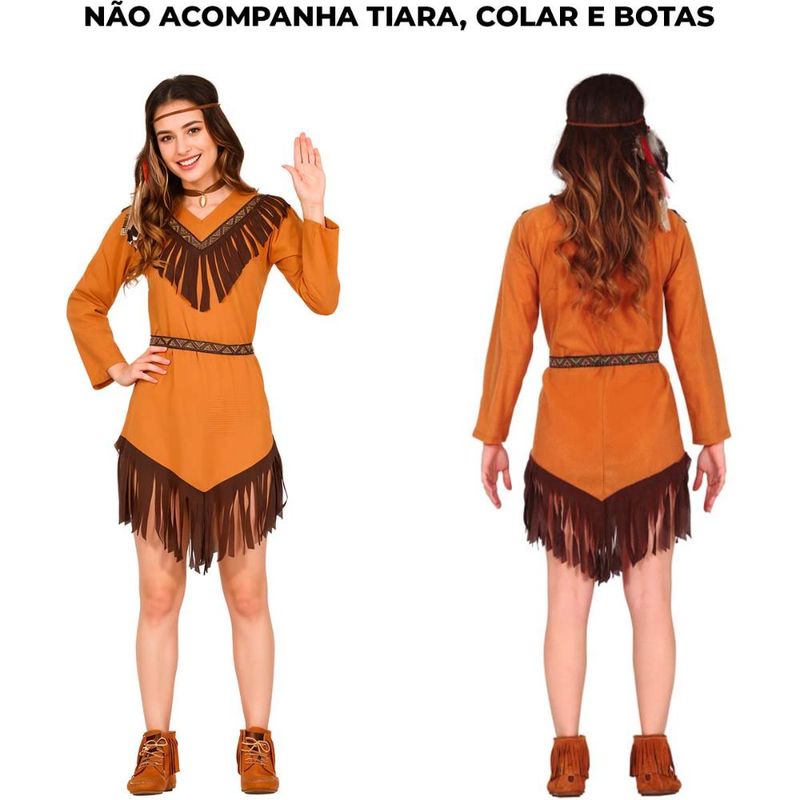 Vestido Índia Americana com Franja Fantasia de Luxo Adolescente Menina Encante nas festas temáticas ou no Carnaval com esta fantasia infantil feminina de personagem indígena. Inspirada na cultura indígena americana, a fantasia é composta por um vestido estiloso com franjas no peito e saia, e um cinto decorativo, garantindo autenticidade e conforto. Produzida em poliéster, é leve, durável e ideal para brincar ou desfilar em eventos temáticos.Material leve e resistente, com toque suave na pele. Vestido Manga longa para maior cobertura e estilo. Cinto estampado com tons vibrantes Ajustável para melhor encaixe na cintura Lavagem à mão com água fria; não usar alvejante. OBS: NÃO ACOMPANHA TIARA, COLAR E BOTAS