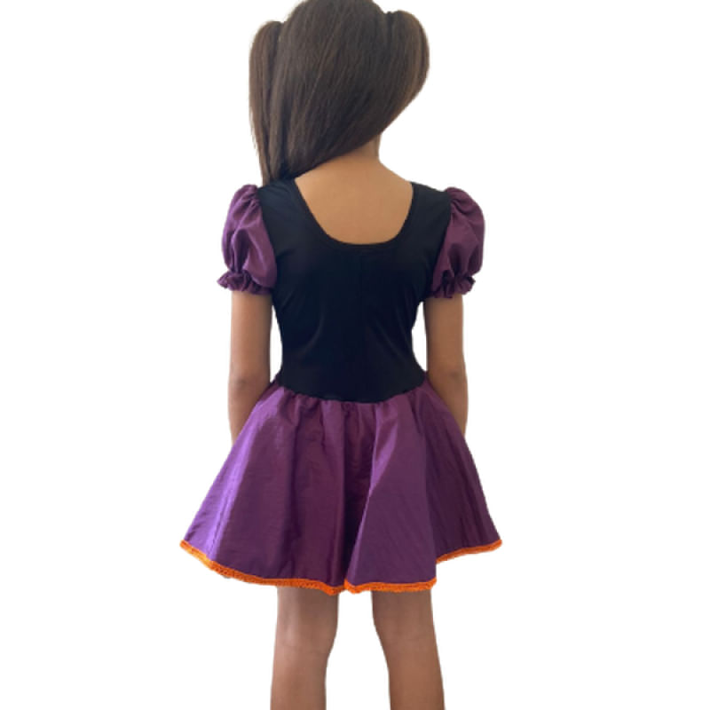 Saia Curta e Forrada: A saia curta adiciona um toque moderno à fantasia, permitindo que sua pequena bruxinha se mova com facilidade e graciosidade. O forro garante conforto enquanto ela dança e brinca.