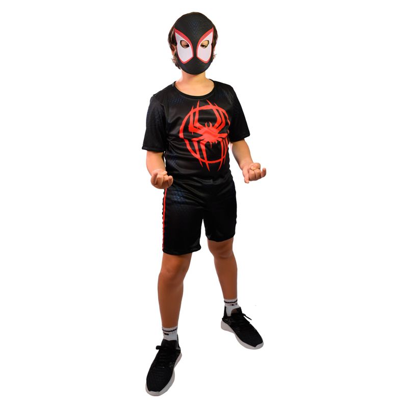 Fantasia do Miles Morales, Básica m da Novabrink, um lindo macacão de mangas e pernas curtas e mascara, feita com tecido de poliéster super confortável, brincar de super herói fica mais divertido com a fantasia do Miles Morales de Spider Man, os pequenos vão se tornar verdadeiros defensores do universo e imaginação diversas historias fantasiados com seu super herói preferido.