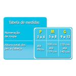 P - Numeração de roupa 2 a 4, para crianças que tenham até 99 cm de altura, dos pés a cabeça.
