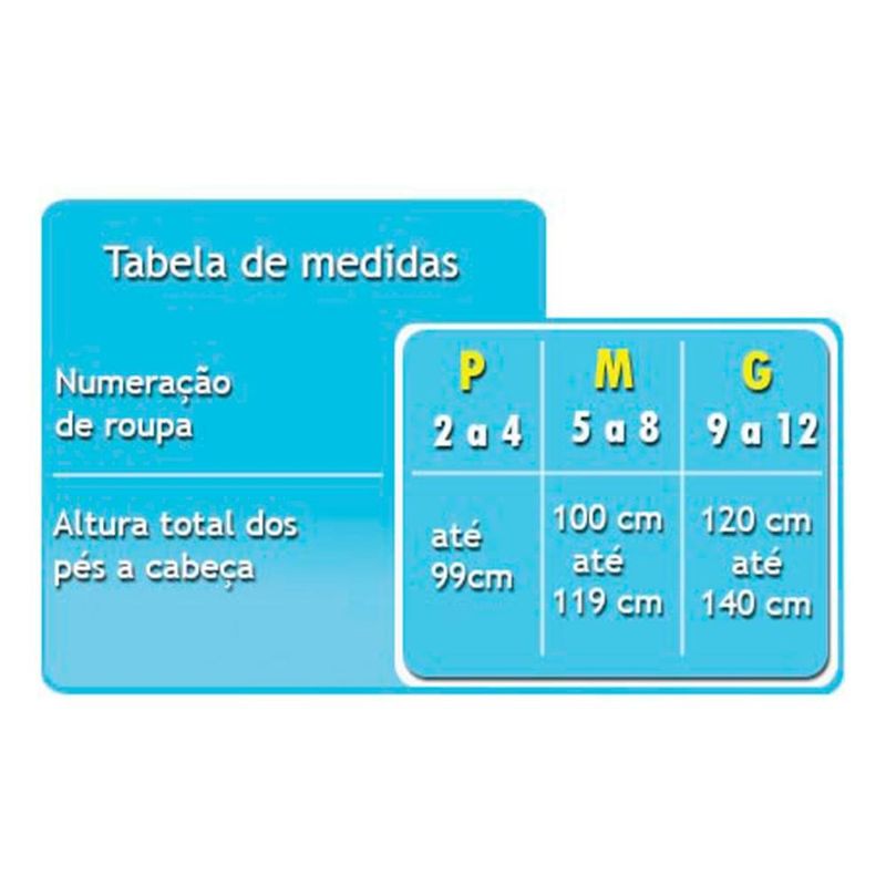 Ficou na dúvida de qual tamanho escolher? Sempre indicamos a escolha de um tamanho maior pois é mais fácil fazer um ajuste, caso necessário. E por ser para criança, a fantasia irá durar por mais tempo conforme ela for crescendo.