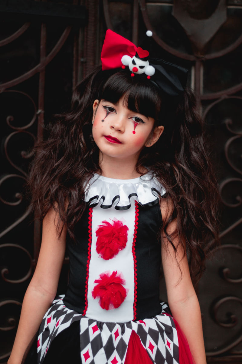Apresentamos a assustadora Fantasia Infantil Palhaçinha do Mal, um conjunto de vestido e tiara que transforma qualquer menina em uma palhaçinha sinistra e cheia de estilo para o Halloween. Características Principais: · Estilo Assustadoramente Charmoso: Desenvolvida especialmente para as pequenas que adoram se transformar no Dia das Bruxas, essa fantasia une o divertido ao assustador, com um vestido que destaca tanto o charme quanto o mistério. · Vestido Confortável com Estampa de Remendos: a parte do corpinho é em tecido branco suplex com elastano oferece conforto e flexibilidade, enquanto a estampa de costura de remendos e um ursinho remendado na frente conferem um toque sinistro. Com detalhes na gola e as bolinhas vermelhas bem estilosas. Saia de Tutu Volumosa: A saia bem armada e rodada, feita com várias camadas de tule, é perfeita para as meninas que adoram um visual marcante. Acessório Completo: Acompanha uma tiara que complementa o visual, garantindo que sua pequena palhaçinha esteja pronta para causar arrepios. Conteúdo do Pacote: · Vestido e tiara.