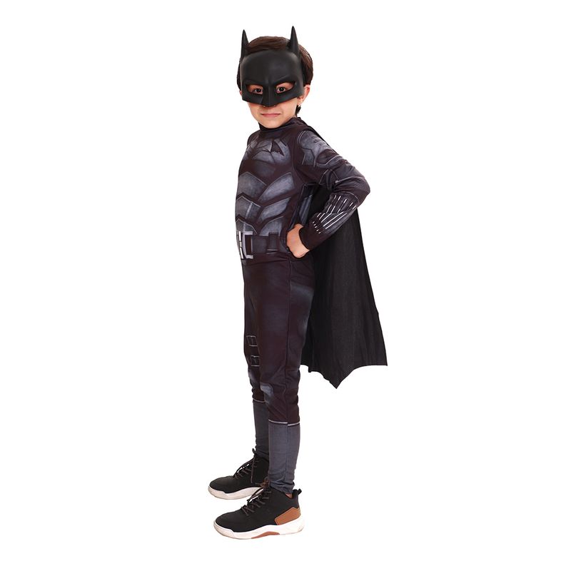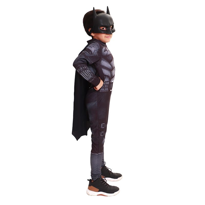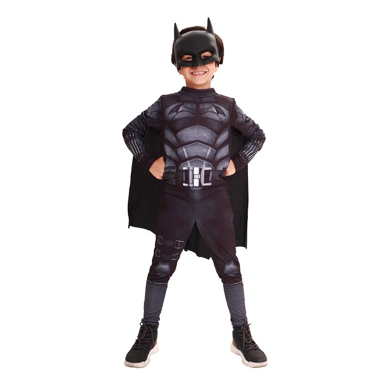 Prepare seu pequeno herói para defender Gotham com a fantasia do Batman, inspirada no mais recente filme da Warner DC! Este macacão de pernas e mangas longas, feito em tecido 100% poliéster, traz artes estampadas que recriam todos os detalhes do traje icônico do Cavaleiro das Trevas. A fantasia acompanha uma capa fluida e uma máscara injetada, garantindo que seu filho esteja pronto para grandes aventuras. Disponível nos tamanhos P, M e G (2 a 3 anos, 4 a 7 anos e 8 a 10 anos, respectivamente), é a escolha perfeita para os fãs de super-heróis que querem se sentir invencíveis!