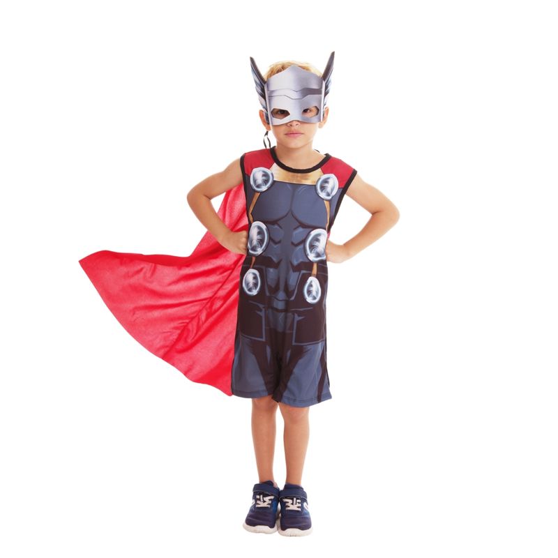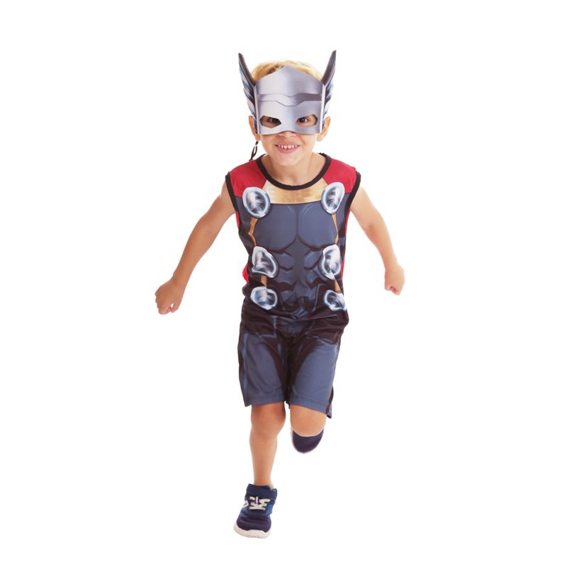 Desperte o herói que existe em seu pequeno! A Fantasia Infantil Premium Curta Marvel Thor com Máscara traz a poderosa essência do Deus do Trovão para as aventuras diárias das crianças. Confeccionada em poliéster de alta qualidade, garante conforto e durabilidade durante brincadeiras e festas.