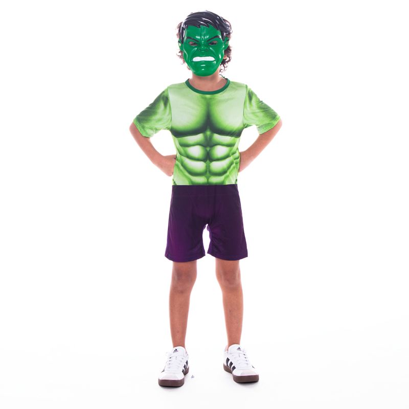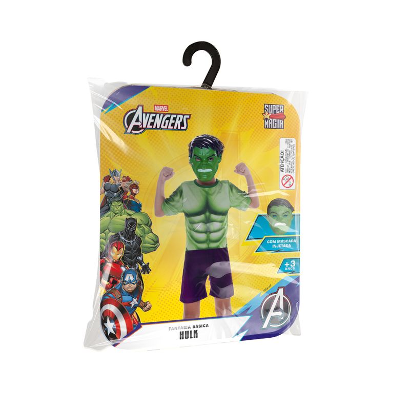 Deixe a força do gigante verde tomar conta da brincadeira com a Fantasia Hulk Básica! Com macacão curto e máscara injetada, é perfeita para crianças a partir de 3 anos que adoram esmagar (de brincadeira, claro!). Disponível nos tamanhos P, M e G, a aventura vai ser incrível!
