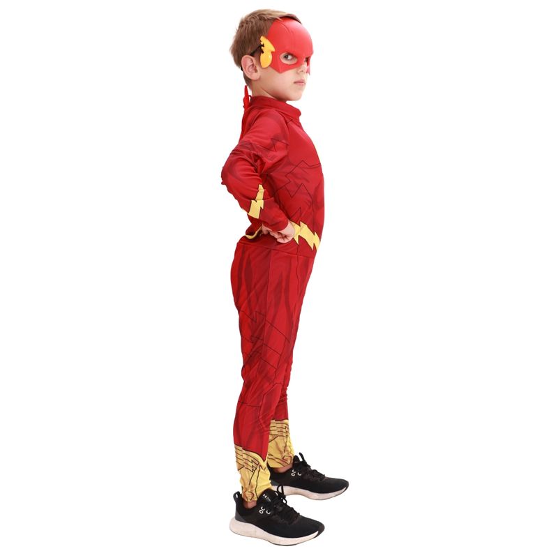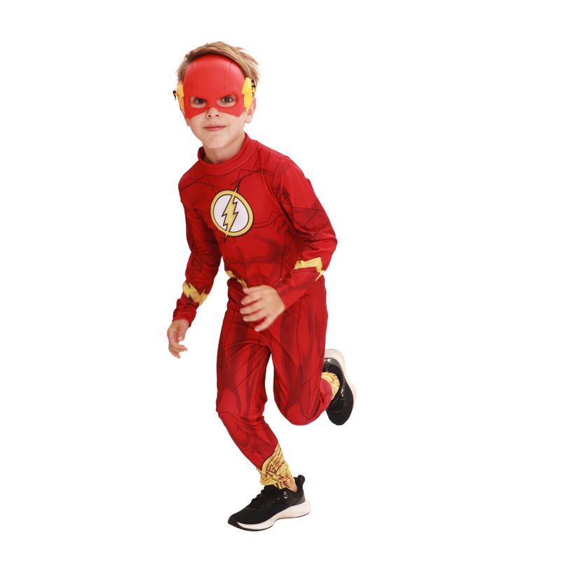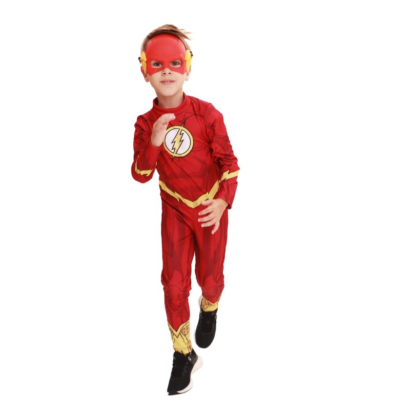 Deixe seu filho entrar em ação com a fantasia do Flash, personagem da Warner DC, na versão clássica! Com um macacão de pernas e mangas longas feito em tecido 100% poliéster, este traje oferece conforto e durabilidade, além de artes estampadas diretamente no tecido, recriando o visual icônico do herói. Acompanha uma máscara injetada para um acabamento autêntico. Disponível nos tamanhos P, M e G (2 a 4 anos, 5 a 7 anos e 8 a 10 anos, respectivamente), é ideal para aventuras rápidas e emocionantes!