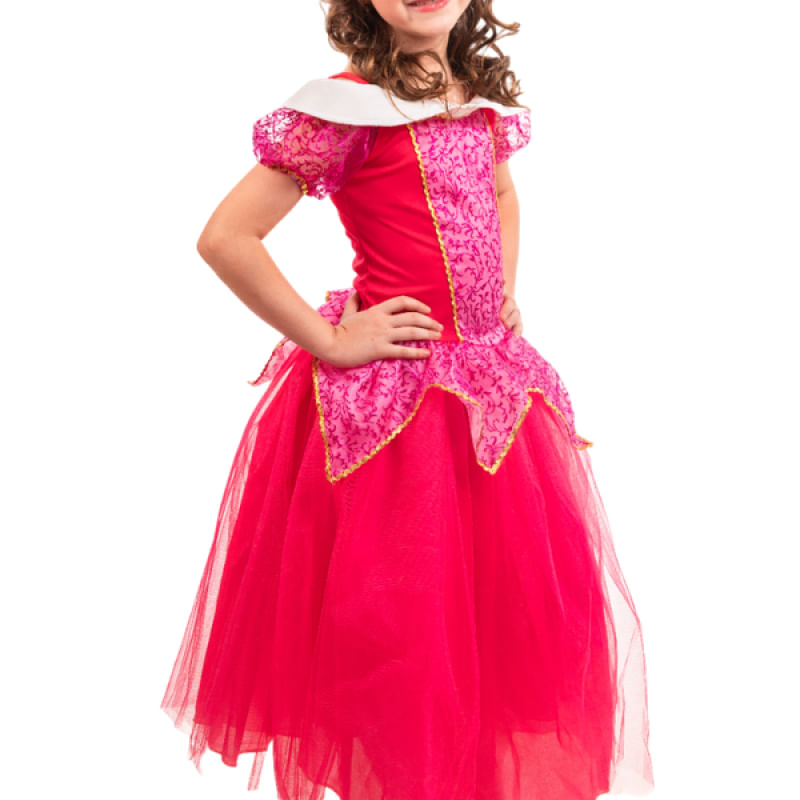Nossa Fantasia Longa de Princesa Bela Adormecida em Pink é um tributo ao conto de fadas, repleta de detalhes encantadores que farão sua pequena se sentir como uma verdadeira princesa. O corpo superior é feito de helanca, proporcionando uma experiência de uso confortável e elástica. O detalhe de organza glitada e galão dourado adiciona um toque de realeza, enquanto as mangas de organza glitada pink com detalhes de galão dourado elevam ainda mais o visual.