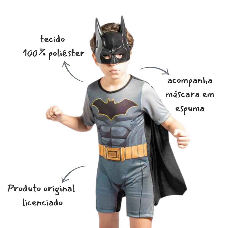 Linda Fantasia Batman Infantil, 100% Original DC, composta por macacão curto bastante detalhado na parte da frente e ainda acompanham incríveis acessórios.