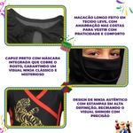 Deixe o Carnaval e Halloween do seu pequeno ainda mais especial com a fantasia infantil de Ninja Preto! Confortável, estilosa e perfeita para momentos de diversão. Garanta a melhor fantasia para meninos e destaque-se na folia. Aproveite nossa qualidade e preços imbatíveis!Itens inclusos:01 Macacão Longo 01 Capuz com Máscara