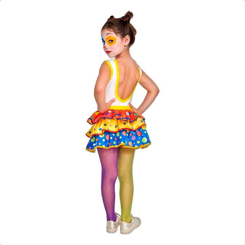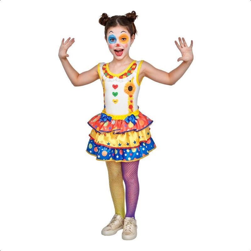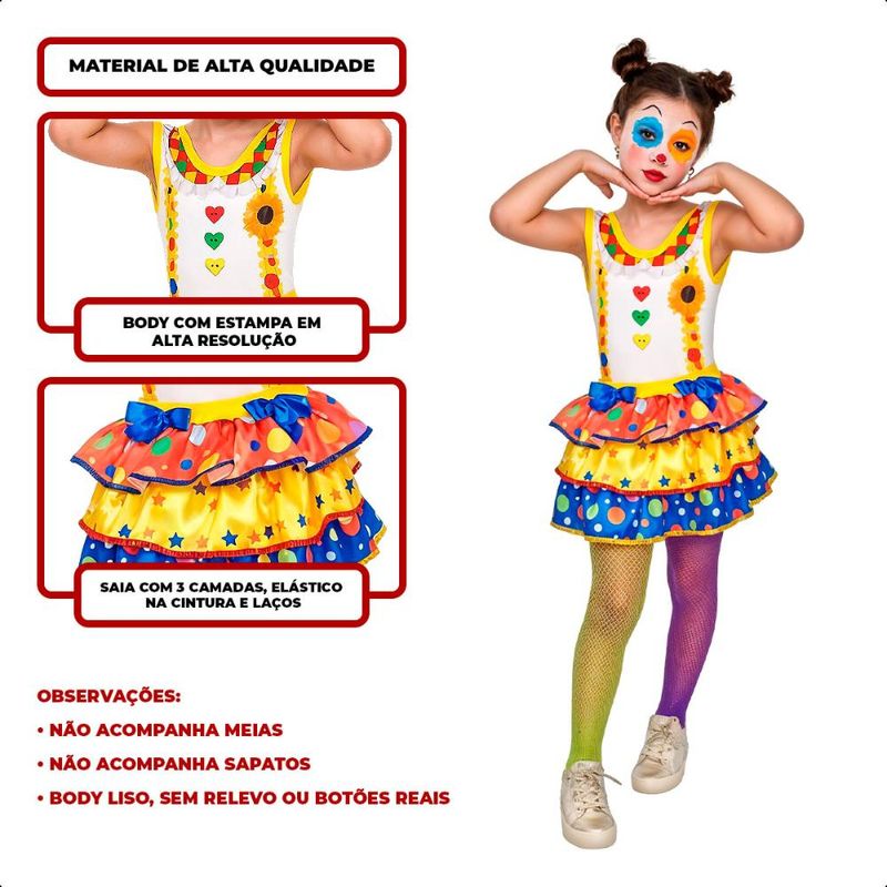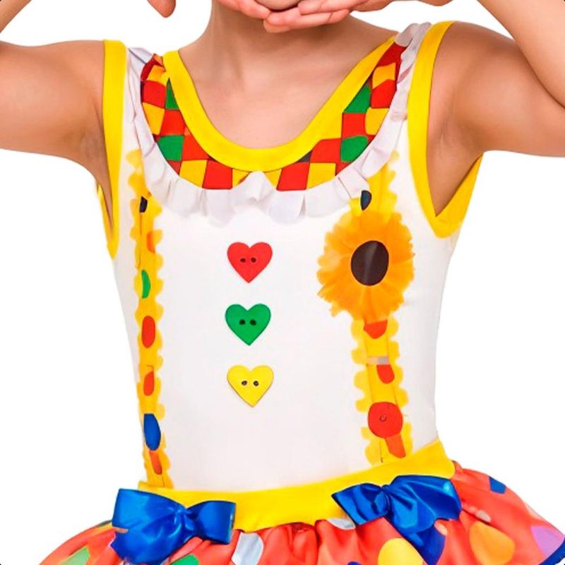 Traga alegria ao Carnaval com esta encantadora fantasia de Palhacinha Divertida Juvenil! O traje inclui um body branco com estampas coloridas em alta resolução, como corações, flores e estrelas, e uma saia multicolorida com camadas, laços na cintura e detalhes em poás e estrelas. Feita de 100% poliéster, é leve e confortável, ideal para festas temáticas, desfiles e eventos infantis. O design vibrante e os acabamentos destacam o estilo de circo, perfeito para as crianças brilharem. Não acompanha meias, sapatos ou acessórios adicionais, e o body é liso, sem relevo ou botões reais.Body com estampas coloridas em alta resolução Saia com camadas e laços na cintura Perfeita para festas temáticas e Carnaval Conforto e diversão garantidos Estilo circo alegre e autêntico