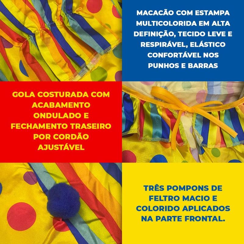 Prepare-se para animar qualquer festa com a Fantasia de Palhaço Adulto. Este macacão colorido é a escolha perfeita para quem quer levar diversão e alegria para o Halloween, festas de aniversário ou eventos de circo. O macacão possui tecido leve, estampas vibrantes e alegres, além de um design confortável que permite total liberdade de movimento. Com este traje, você será o centro das atenções, garantindo boas risadas e momentos inesquecíveis. É a fantasia ideal para quem busca um visual divertido e carismático, sem abrir mão do conforto. Crie a maquiagem perfeita e os acessórios complementares para se tornar o palhaço mais animado e memorável de todos!Macacão colorido e estampado Tecido leve e confortável Ideal para festas de aniversário, Halloween e circo Visual divertido e animado Fácil de vestir e usar OBS: Não acompanha sapatos e luvas.