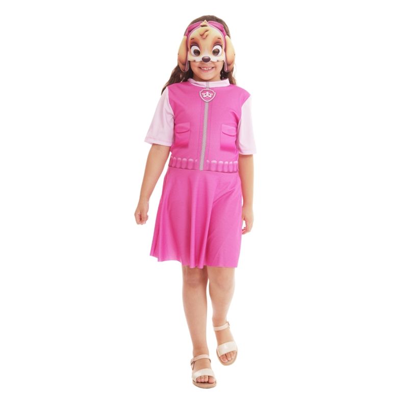 Fantasia skye patrulha canina tamanho p da novabrink, vem com vestido rosa, detalhes das asas e chapéu com orelhinhas da personagem, hora de decolar, leve, licenciada e cheia de fofura, é perfeita para voos cheios de imaginação, disponível no tamanho P (veste de 3 a 5 anos), para meninas que adoram cuidar da turma com estilo.