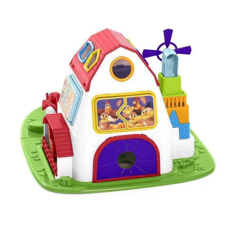 1 Fazendinha, 1 Base Desencaixável, 6 Peças Didáticas Emborrachadas, 1 Cavalinho, 1 Tratorzinho, 4 Peças de Empilhar, 6 Formas de Encaixar