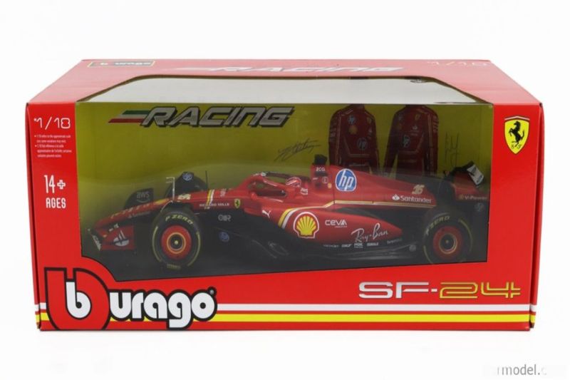 Ferrari F1 SF24 - Charles Leclerc #16Marca do produto: Bburago.Coleção: Formula 1 2024 - Ferrari Racing.Pneus de Borracha.Escala: 1/18 (aproximadamente 31 cm de comprimento x 11,5 cm de largura x 6,5 cm de altura).