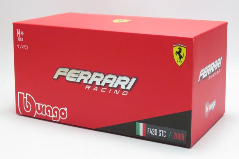 Ferrari F430 GTC / 2008 Marca do produto: BBurago. Coleção: Ferrari Racing Series. Escala: 1/43 (aproximadamente 10,5 cm de comprimento). 24h Le Mans 2008 (F. Babini / M. Malucelli / P. Ruberti) Pneus de Borracha. Acompanha Caixa de Acrílico com nome do carro, corrida e pilotos gravado na base.