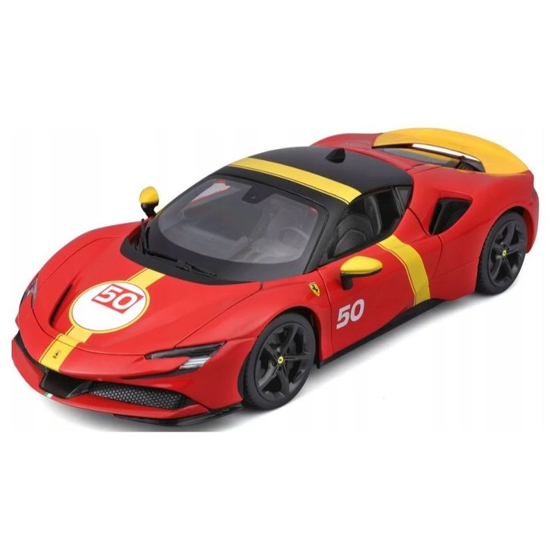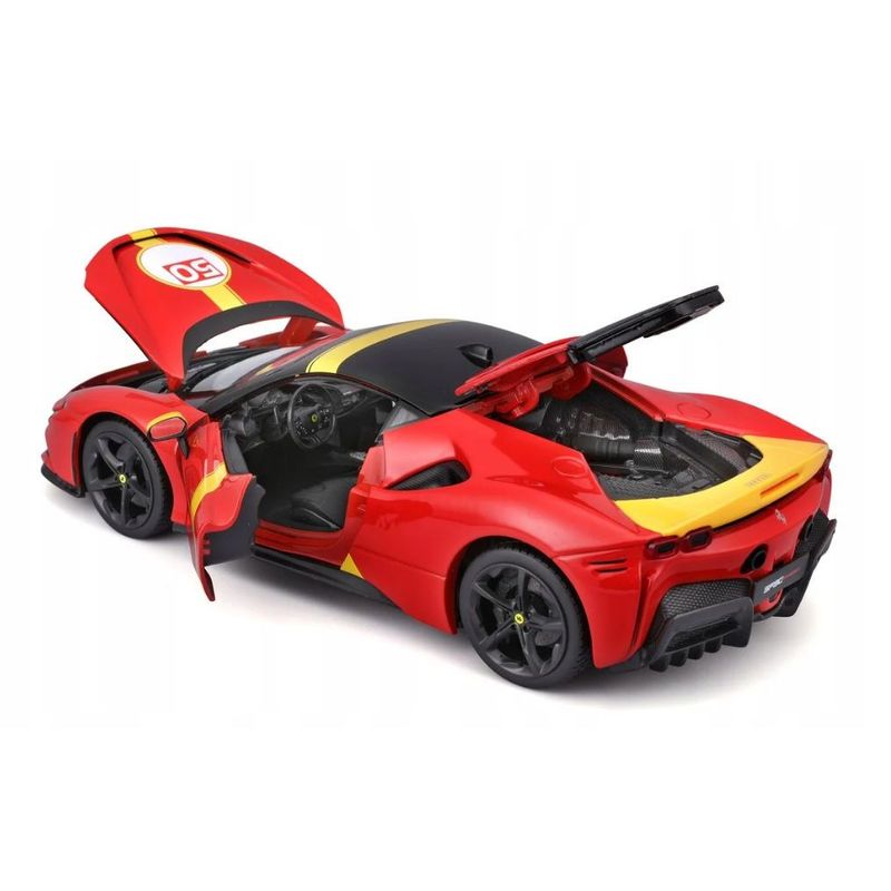 SF90 Stradale Assetto Fiorano Marca do produto: Bburago. Escala: 1/18 (aproximadamente 25 cm de comprimento). Pneus de Borracha. Abre portas, capô e tampa traseira. Miniatura em Metal com partes de plástico.