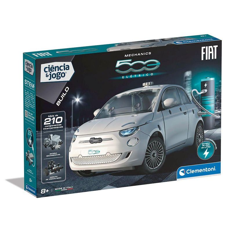 Nome do produto: Fiat 500 Veículo Elétrico;Idade recomendada: A partir de 8 anos;Selo Inmetro: 006730/2022;Contém: 1 kit para construir um modelo do FIAT 500 elétrico. O motor funciona com bateria íon-lítio recarregável e vem com um cabo de carregamento que imita o veículo real.