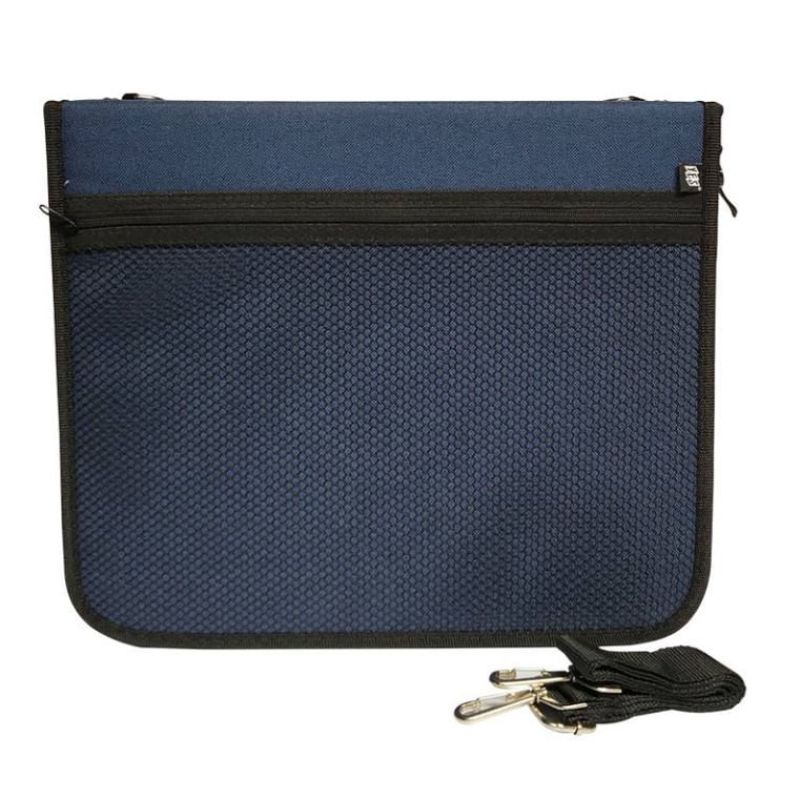 Versátil fichário em tecido com alça regulável e removível, zíper, 4 argolas, tamanho ofício. Destaca-se pelo seu design e por seus compartimentos! Possui 1 bolso telado interno, 1 externo, porta cartões, porta caneta, 3 bolsos internos e 1 divisória.
