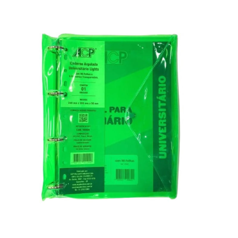 LIVROS E PAPELARIAMATERIAIS ESCOLARESFichário Universitário Argolado - Lights - VERDE