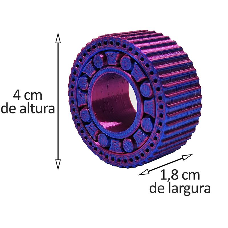 Com 4 cm de altura e 1,8 cm de largura, é ideal para aliviar o estresse e proporcionar momentos de concentração através de engrenagens interativas.