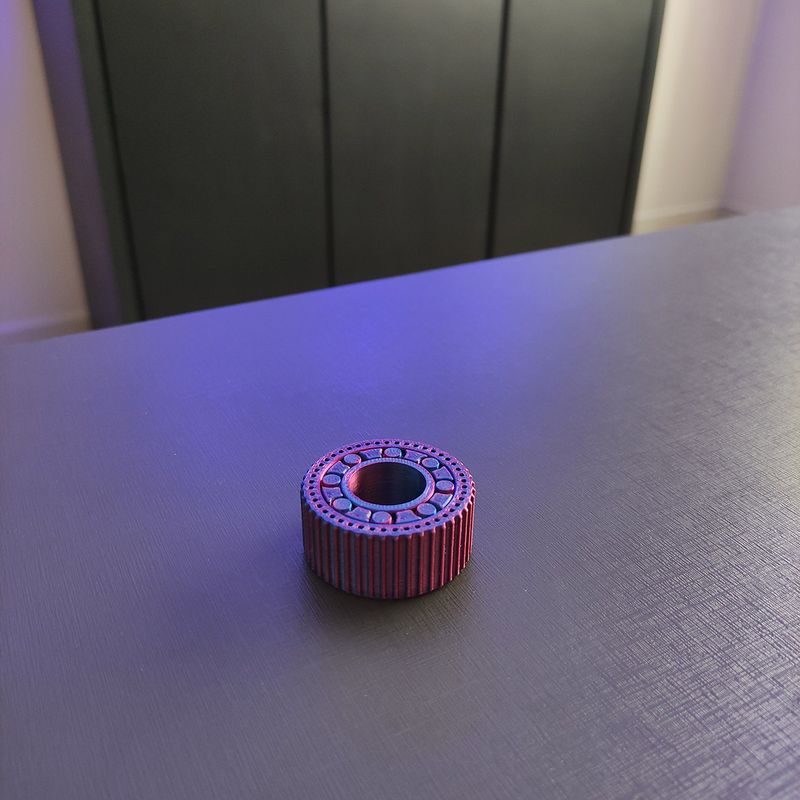 Feito com impressão 3D de alta qualidade e acabamento bicolor, este fidget spinner em formato de anel combina estética e funcionalidade.