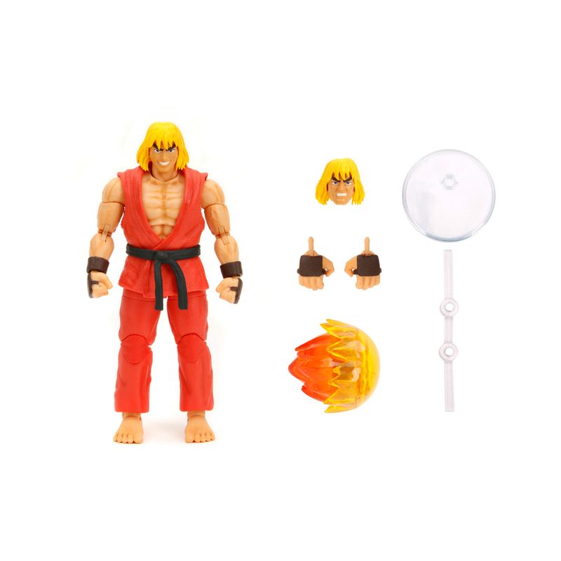 A action figure Ken Street Fighter II da Jada Toys é uma representação autêntica e detalhada do icônico lutador de artes marciais do famoso jogo de luta. Com todos os acessórios incluídos, esta figura oferece uma experiência completa para os fãs de Street Fighter.