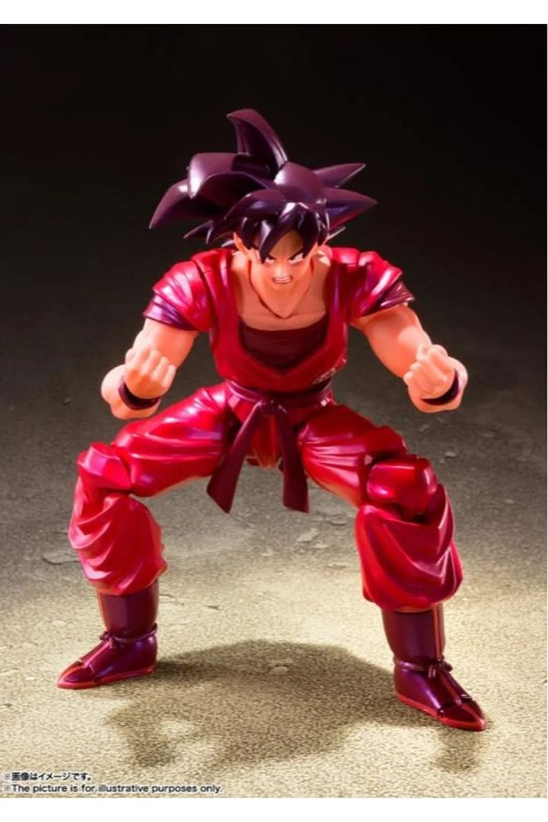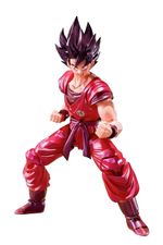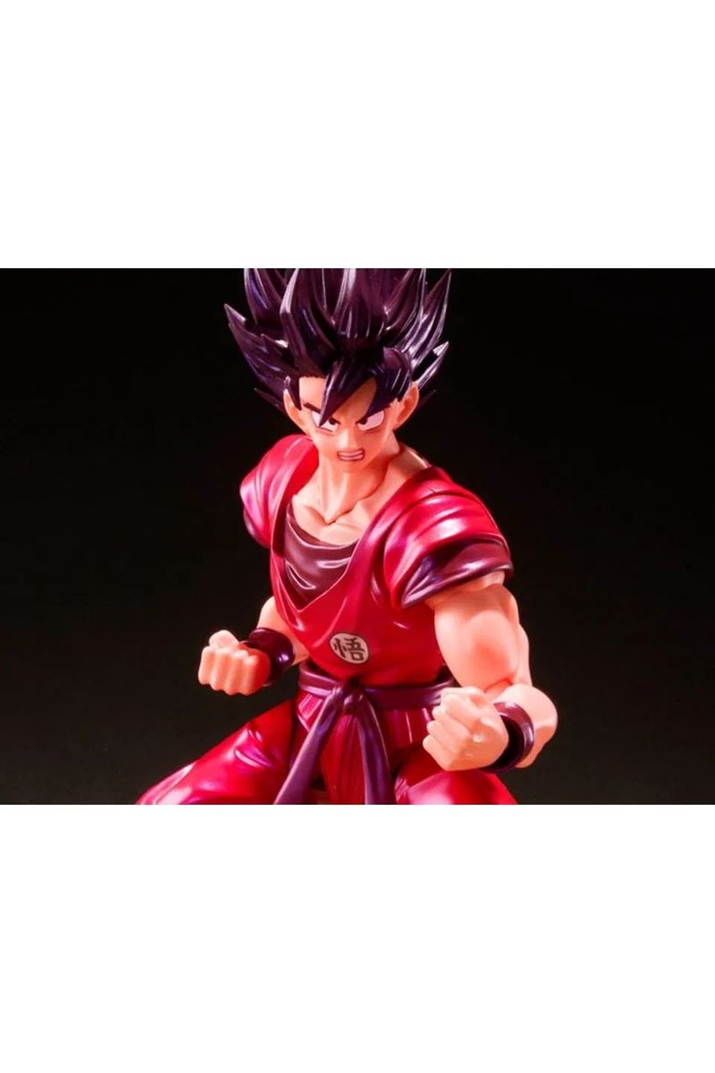 Son Goku é o protagonista da franquia Dragon Ball, criada por Akira Toriyama. Sua primeira aparição ocorreu no primeiro capítulo do mangá Dragon Ball, intitulado Bulma e Son Goku, publicado na revista Weekly Shonen Jump em 3 de dezembro de 1984. Goku é inspirado em Sun Wukong, personagem do romance Jornada ao Oeste. Porém, Toriyama mudou algumas de suas características para ser mais original. Goku é apresentado como um menino estranho com rabo de macaco e força sobre-humana. Alegre, corajoso, e também um pouco ingênuo, Goku é um alienígena Saiyajin, originalmente enviado à Terra quando criança com a missão de destruí-la. Porém, um acidente altera sua memória, fazendo-o crescer com um coração puro e depois se torna o maior defensor da Terra, e também o líder informal dos Guerreiros Z. Através da sua vida, ele treina duro e deseja ser o melhor guerreiro possível, e ao mesmo tempo usando sua força incrível para manter a paz. Goku invoca a técnica Kaio-Ken nesta nova figura da linha S.H.Figuarts da Banda. Com uma pintura brilhante perolada, é o primeiro com cabelo preto invertido da série, com articulações que permitem ser totalmente posicionado para cenas de batalha.