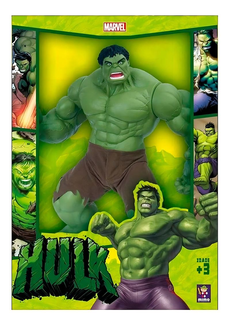 DIVERSÃO GARANTIDA!A Figura de Ação Hulk 457 da Mimo é perfeita para os fãs do incrível herói da Marvel! Com impressionantes 55 cm de altura, essa figura de ação vai conquistar as crianças e colecionadores. Ela possui articulações nos braços, cabeça, cintura e pernas, permitindo diversas posições para recrear cenas épicas das histórias em quadrinhos. Além disso, o Hulk vem com uma bermuda em tecido, dando um toque realista ao visual.Ideal para quem busca uma figura de ação de grande porte e alta qualidade, a figura do Hulk proporciona horas de diversão, além de ser um excelente item para exibição. Garanta já a sua e adicione este poderoso herói à sua coleção!Aviso legal• A idade mínima recomendada para usá-la é 3 anos.