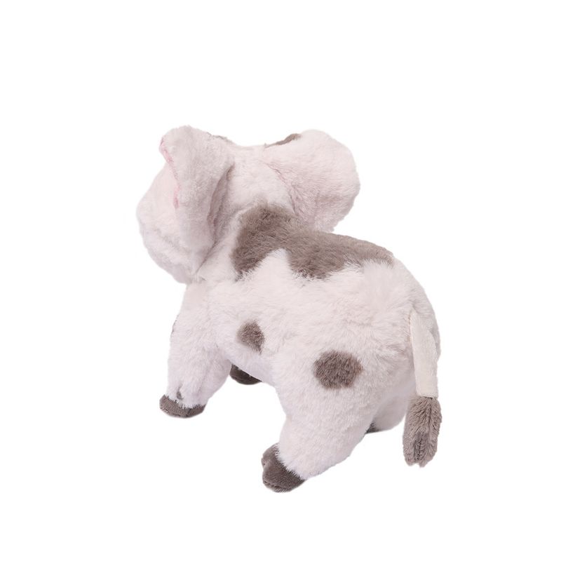 A pelúcia reproduz fielmente o visual fofo e carismático de Pua, com suas orelhas grandes, manchas e expressão cativante.