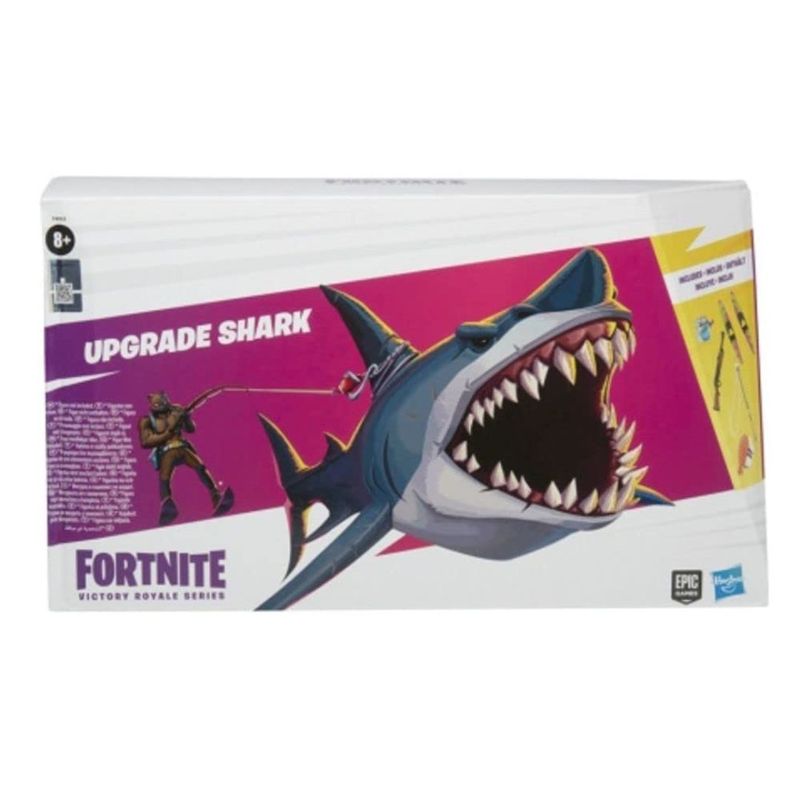 Chegou a hora de montar um esquadrão e desbloquear o lendário universo do jogo Fortnite... no mundo real! A série Victory Royale leva as figuras Fortnite para o próximo nível com designs e poses altamente ajustáveis, e detalhes baseados nas roupas dos personagens favoritos dos fãs do videogame Fortnite. Nunca se sabe quem vai entrar em sua próxima batalha, mas sempre lembre-se de agradecer ao motorista do ônibus. Você vai precisar de uma vara de pescar maior. Esta figura Upgrade Shark de 15 cm possui detalhes do jogo, mandíbula articulada e interiores esculpidos! Divida a figura para revelar os acessórios! Inclui Shrimpy Back Bling, vara de pescar, poção de escudo, 2 esquis aquáticos e arma pump shot. Encaixar acessórios de esqui aquático a outras figuras e o acessório de vara de pescar na barbatana dorsal da figura para criar poses com estilo!