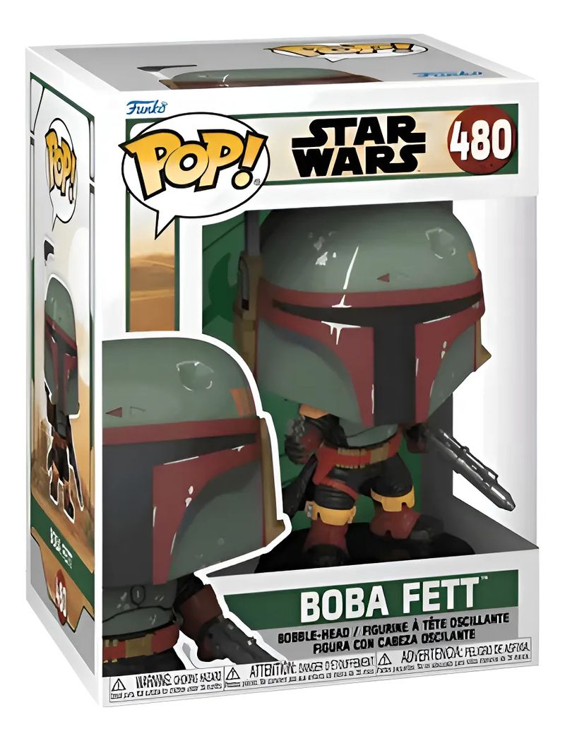 É uma figura colecionável da linha Pop! da Funko, que representa o personagem Boba Fett da franquia Star Wars.