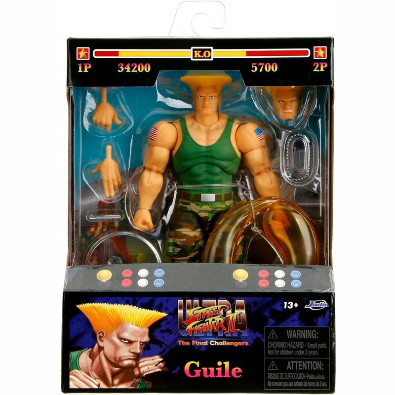 A action figure Guile Street Fighter II da Jada Toys é uma representação autêntica e detalhada do icônico lutador de artes marciais do famoso jogo de luta. Com todos os acessórios incluídos, esta figura oferece uma experiência completa para os fãs de Street Fighter.