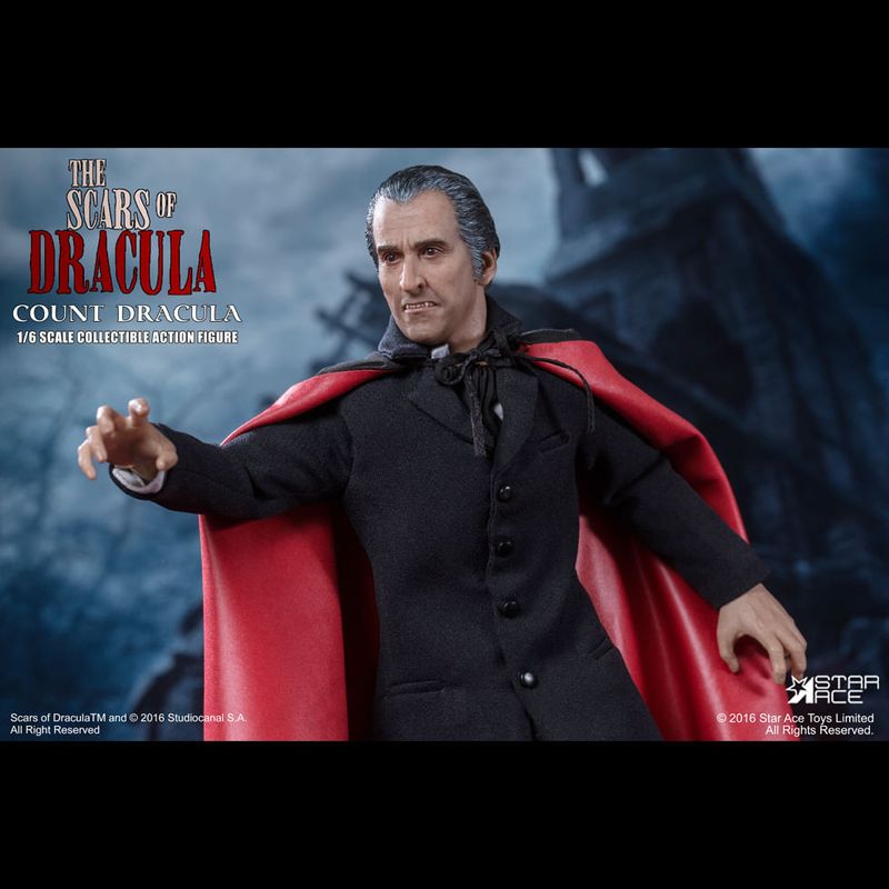 -Plenamente realizados semelhança autêntica de Christopher Lee como "Conde Drácula" no filme de "Scars of Dracula" com a expressão facial preciso e textura de pele detalhada
