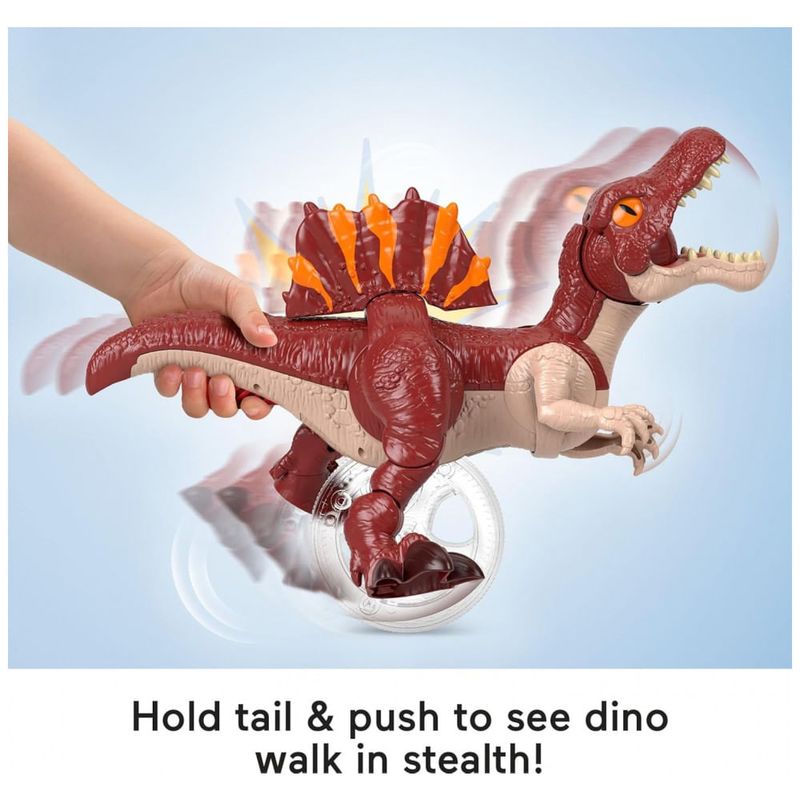 O brinquedo Fisher-Price Imaginext Jurassic World Rebirth Sprinting Spinosaurus é um dinossauro articulado de aproximadamente 23 cm de altura, desenvolvido para brincadeiras de ação com crianças em idade pré-escolar. Inspirado em Jurassic World Rebirth, o modelo traz visual estilizado da espécie Spinosaurus, com cores vibrantes e detalhes de crista dorsal.?