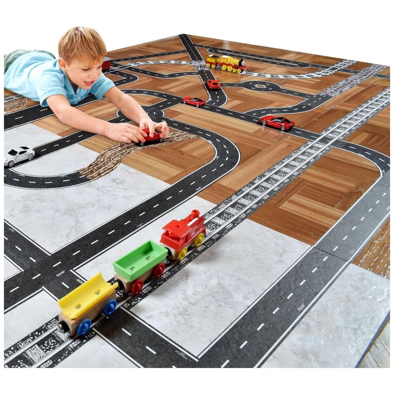 É perfeito para construir estradas de brinquedo instantâneas, rodovias e pistas de corrida em qualquer superfície plana, a qualquer hora e em qualquer lugar. Compatível com seus caminhões de carros de brinquedo existentes, a fita adesiva original PlayTape é simples de usar e perfeitamente dimensionada para uma criança manusear com facilidade. As estradas PlayTape são projetadas de acordo com especificações exatas e podem ser facilmente rasgadas com as mãos e reposicionadas. Adicione curvas conectando estradas PlayTape com curvas PlayTape. A fita adesiva PlayTape é segura para o seu filho e para sua casa, pois é à base de papel, portanto não é necessária tesoura sem látex. Ela é segura para pisos, paredes e móveis, descascando sem deixar resíduos. O PlayTape atende a todos os padrões de segurança infantil aplicáveis e é reciclável. O PlayTape já ganhou 30 prêmios do setor, incluindo o prêmio Academics Choice Brain Toy e o Dr Toys 10 Best.