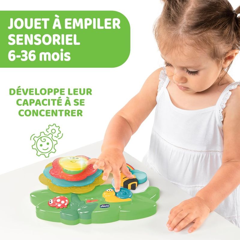 A Flor Sensorial é um brinquedo desenvolvido para ajudar os bebés a focar sua atenção em estímulos luminosos e sons levemente sobrecarregados da natureza e assim desenvolver a capacidade de concentração.